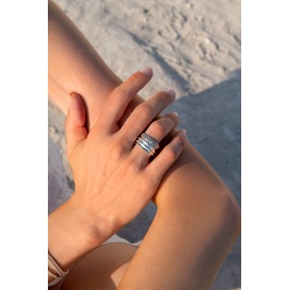 Cette bague en argent 925 est composée d'un anneau perlé tout argent. Délicate et Bohème chic, elle saura mettre en valeur votre look hippie chic en toute finesse. Disponible de la plus petite à.