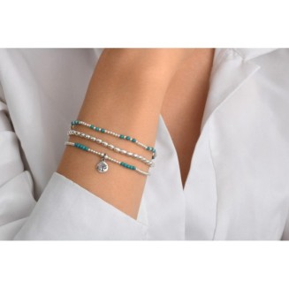 25,00 €Très joli bracelet élastique facile à enfiler en argent 925. Il est composé à la fois de perles d'argent et de turquoises mais aussi d'un charm arbre de vie. Bracelet à porter seul ou accompagné de. -