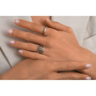 Bague en argenty 925 au style raffiné elle joue en longueur avec les formes. Tendance tribale, baroque ou médievale, elle ira parfaitement sur plusieurs de vos doigts. Disponible de la plus petite.